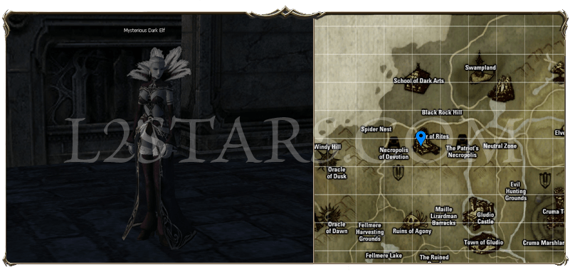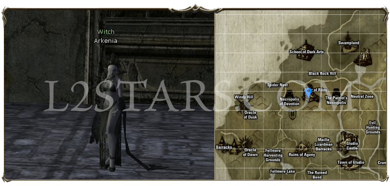 9. Телепортируемся в Dark Elven Village. Бежим к Altar of Rites (Церемониальный Алтарь). Ищем Arkenia (Аркения), она вам передаст