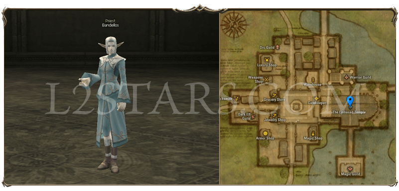 11. Телепортируемся в Giran Castle Town. В церкви ищем Priest Bandellos. Получаем награду и После того, когда вы достигните 40 уровня и у вас на руках будут все три марки, которые требуются на получения
