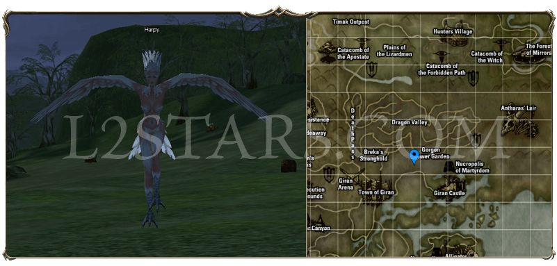 11. Телепортируемся в Giran Castle Town. Телепортируемся в Breka's Stronghold. В окрестностях Necropolis of Martyrdom охотимся на Harpy (Гарпия 32 ур.), пока не получим