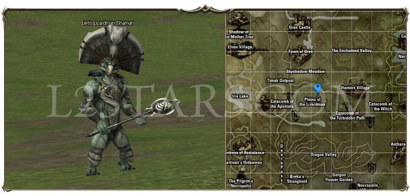 15. Телепортируемся в Town of Oren. Телепортируемся в Plains of the Lizardmen (Долина Ящеров). Охотимся на Leto Lizardman Shaman (Шаман Ящеров Лито 39 ур.) и Leto Lizardman Overlord (Вождь Ящеров Лито 40 ур.), пока не получим Talin's Spear Blade, Talin's Spear Shaft, Talin's Ruby, Talin's Aquamarine, Talin's Amethyst и Talin's Peridot. После получения необходимых предметов, возвращаемся в Hunters Village к Isael Silvershadow. Она вам передаст
