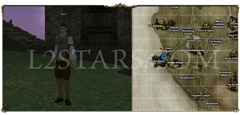 2. Телепортируемся в Gludin Village. Бежим в Giran Harbor. Ищем Perrin После разговора будет призван монстр - Tatoma, после убийства которого поговорите еще раз с Perrin
