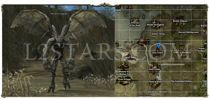 7. Телепортируемся в Giran Castle Town. Телепортируемся в Breka's Stronghold. Бежим в Gorgon Flower Garden. Охотимся на Turak Bugbear Warrior (Воин Людоедов Турак 33 ур.). Охотимся на них пока не получим Turak Bugbear Spirit Ore (Камень Людоедов Турак 33 ур.). Когда получите все необходимые предметы, возвращаемся к Terry, который находится в гильдии воинов в Town of Dion. Master Terry передаст вам