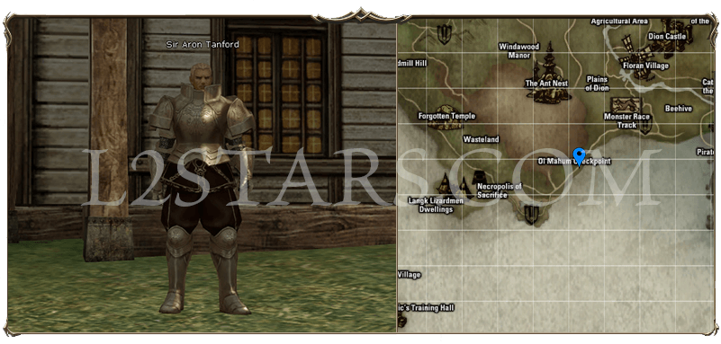 3. Телепортируемся в Gludin Village. Телепортируемся в Wasteland. Ищем Sir Aron Tanford.