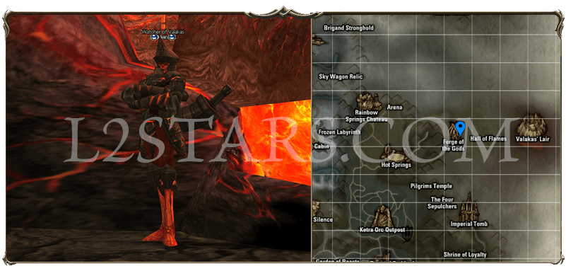 Квест на Валакаса начинается в Forge of the Gods. Находим Klein. Чтобы добраться до него, понадобится пройти через несколько помещений, наполненных агрессивными монстрами, поэтому придется просить какого-нибудь БД провести Вас под Dance of Shadows или пройти самому под Silent Move если Вы играете за ТХ.