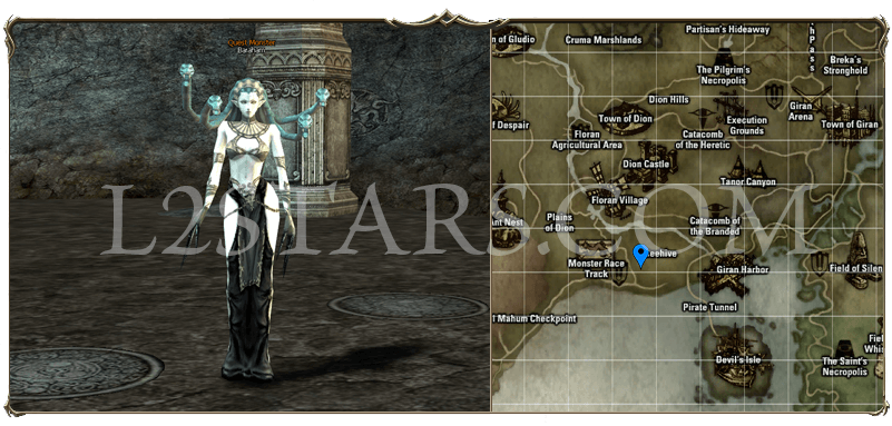 4. Телепортируемся в Dion. Телепортируемся в Beehive. Ищем в скале пещеру. Нам необходимо убить Baraham. После убийства Baraham мы получим