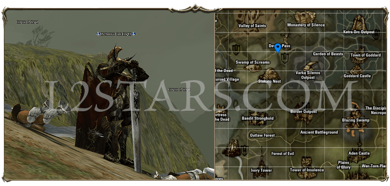 2. Телепортируемся в Swamp of Screams. Ищем Mysterious Dark Knight. Обыскиваем мертвых ангелов, которые лежат вокруг рыцаря, пока не найдем