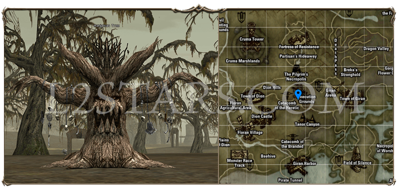 3. Телепортируемся в Town of Dion (Город Дион). Бежим в Execution Grounds (Земля Казненных). Охотимся на Hangman Tree (Висельное Дерево 35 ур.), пока не получим