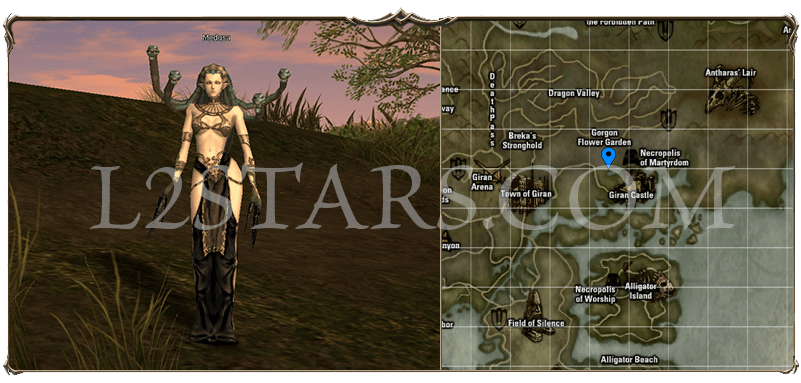 5. Телепортируемся в Giran Castle Town Телепортируемся вBreka's Stronghold. В окрестностях Necropolis of Martyrdom охотимся на Medusa (Медуза 34 ур.) , пока не получите