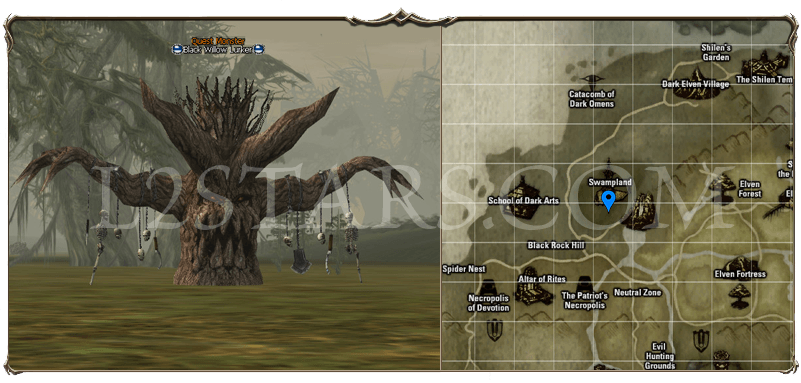 21. Возвращаемся в Dark Elven Village. Телепортируемся в Swampland. На болоте охотимся на Black Willow Lurker (Черная Ива Наблюдатель), пока не получите