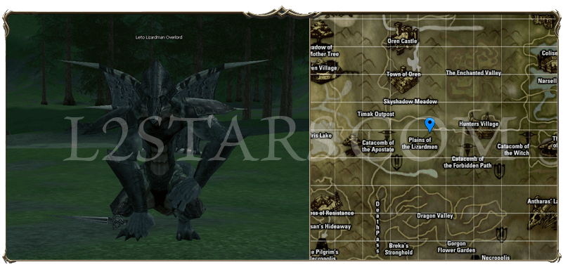 18. Телепортируемся в Town of Oren Телепортируемся в Plains of the Lizardmen. Охотимся на Leto Lizardman Overlord (Вождь Ящеров Лито 40 ур.), пока не получите
