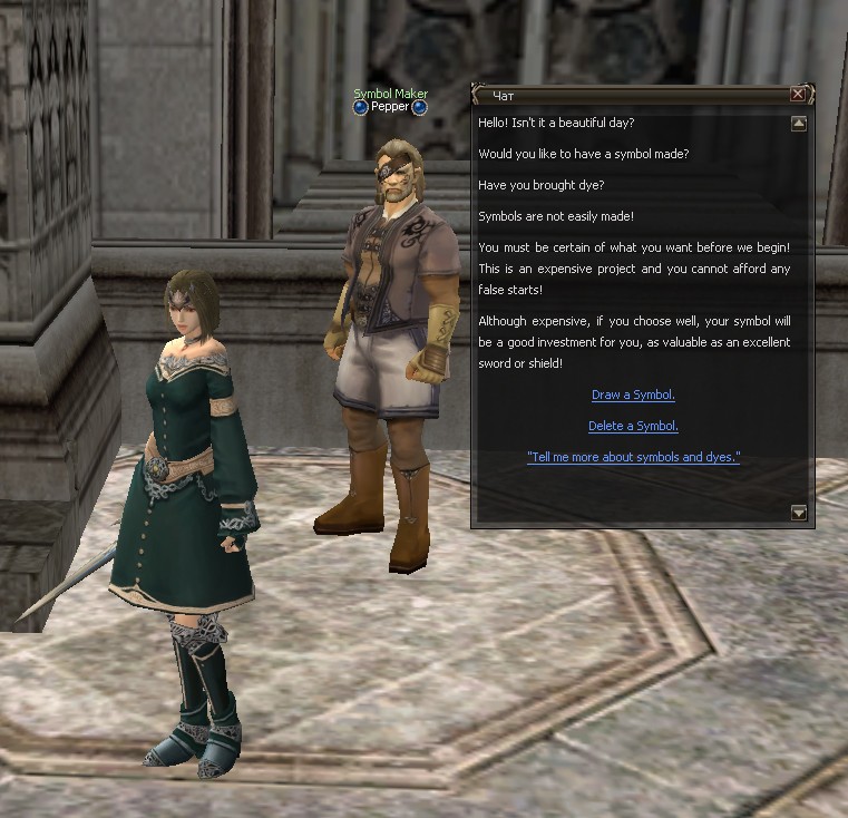 Чтобы нанести татуировку, необходимо обратиться к Мастеру Татуировок. Необходимо принести ему 10 красок нужного типа и небольшую плату за нанесение.