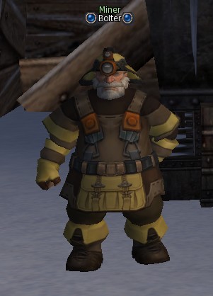 Miner Bolter (Шахтер Больтер) — NPC 70 уровня и обитает в локации Frozen Valley (Замерзшая Долина).