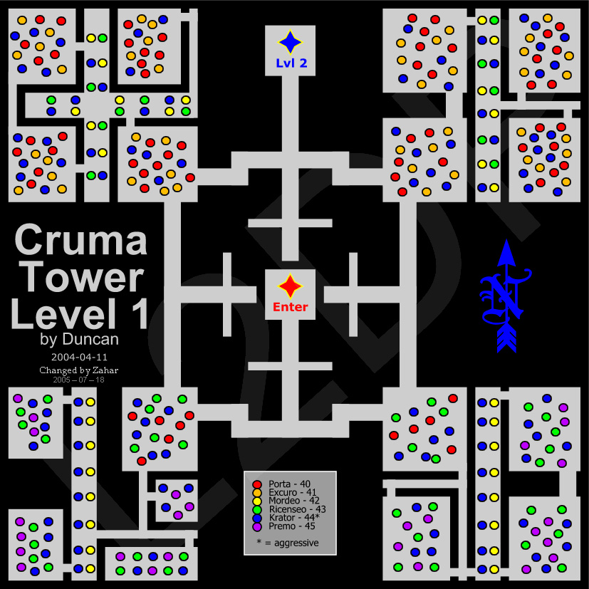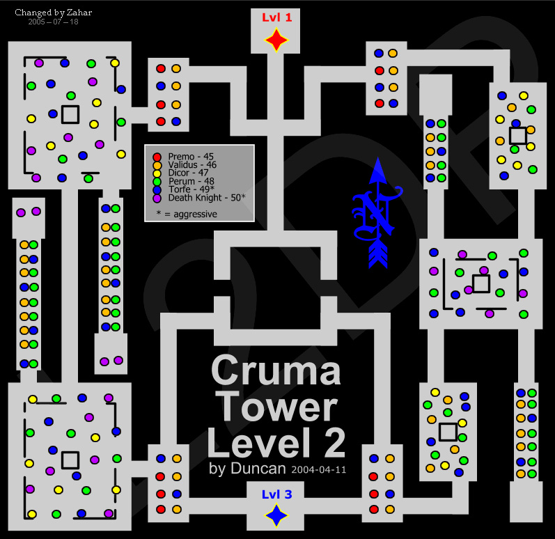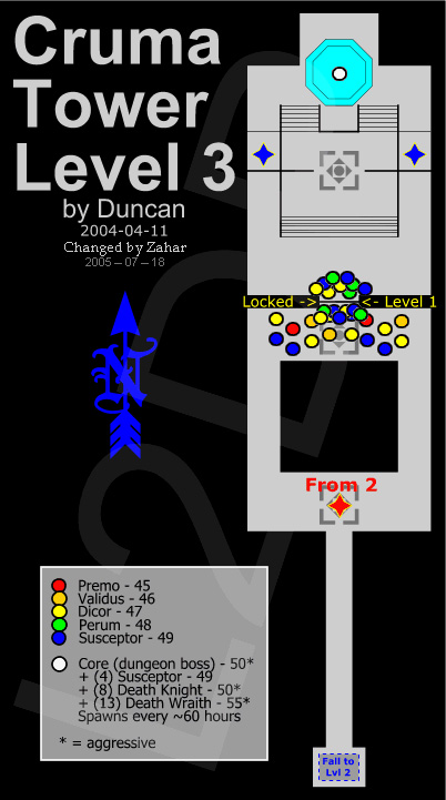Cruma Tower — Башня Крумы. Была построена много веков тому назад гигантами как оборонительное сооружение. Но гиганты давно сгинули — а Башня осталась, до сих пор напичканная работающими замысловатыми защитными устройствами. Големы, во главе Карнамакосом охраняют нижние этажи Башни. Защитный механизм под названием Сусцептор Архонт, служит для управления основными защитными механизмами. Но говорят, что на вершине Башни скрывается один из немногих сохранившихся шедевров строителей Гигантов, который является центром управления всеми системами Башни. Поэтому сюда была направлена группа исследователей в лице Хранителей Портала и некоторых других магов Башни Слоновой Кости.