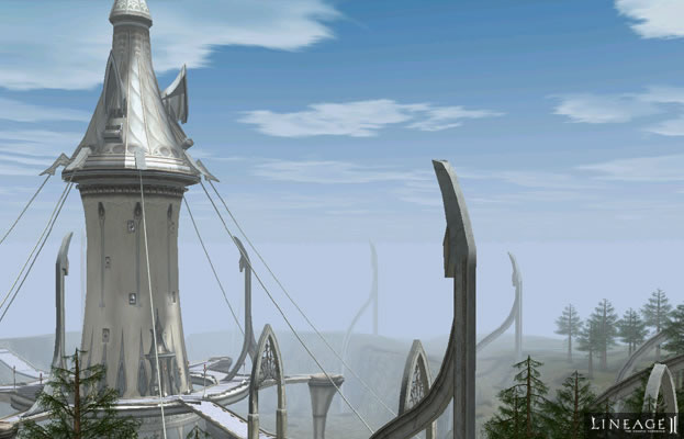 Башня расположена в центре кратера. Два длинных моста соединяют башню с его краями. В месте, где они соединяются, высоко в небо взлетает огромная башня Слоновой Кости, она словно парит в легком одиночестве, покрытая изящными украшениями.