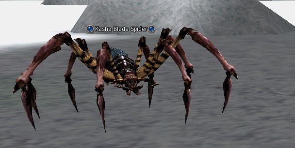 Kasha Blade Spider (Опасный Паук Кхаши) — неагрессивный монстр 17 уровня Bugs расы. Обитает в локациях Immortal Plateau, Northern Region (Северная Часть Плато), Frozen Waterfalls (Замерзший Водопад). При убийстве моба выпадают хербы с бафами.