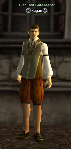 Clan Hall Gatekeeper Kogan (Привратник Холла Клана Коган) — NPC 70 уровня и обитает в локации Gludin Village (Деревня Глудин).