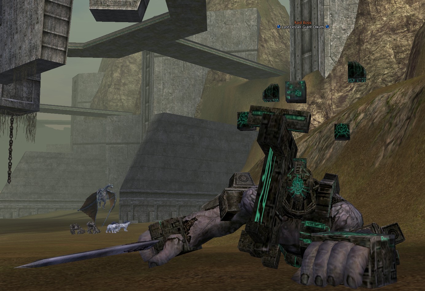 Raid Boss - Level 75 - Discovered in the Giants' Cave, some scholars speculate that given his combat prowess, this Lesser Titan is actually a real Titan. Hedging their bets, they named him the Last Lesser Giant Olkuth.  Raid Boss - If the person who made the greatest contribution is 3 or more levels higher than the raid monster, then the item/adena rewards will decrease. If the difference is 9 or more levels, the monster will drop nothing at all.  Stun - You are stunned and temporarily prohibited from movement.