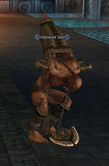 Hallowed Seer — агрессивный монстр 22 уровня Undead расы. Обитает в локациях Necropolis of Sacrifies (Жертвенный Некрополь).
