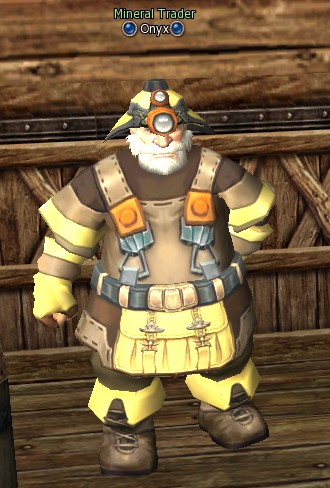 Mineral Trader Onyx (Продавец Минералов Оникс) — NPC 70 уровня и обитает в локации Hunters Village (Деревня Охотников).