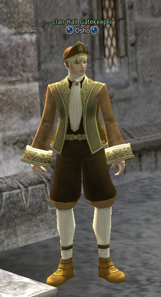 Clan Hall Gatekeeper Osho (Привратник Холла Клана Ошо) — NPC 70 уровня и обитает в локации Town of Schuttgart (Город Шутгарт).