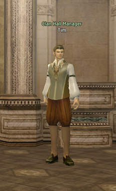 Clan Hall Manager Tim (Управляющий Холлом Клана Тим) — NPC 70 уровня и обитает в локации Town of Gludio (Город Глудио).