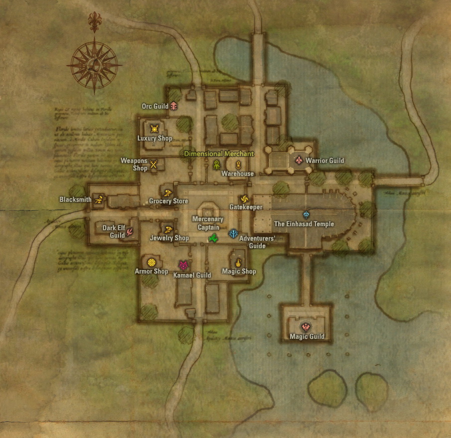 Великий Мастер Мельдина утверждает что здесь смешиваются между собой всевозможные расы, и ни для кого не является удивительным увидеть орка, спокойно торгующего с гномом, в то время как далеко на севере, в Шутгарде между ними наверняка бы завязалась драка. Вот только к камаэлям здесь чересчур подозрительно относятся, их воспринимают как чужаков.