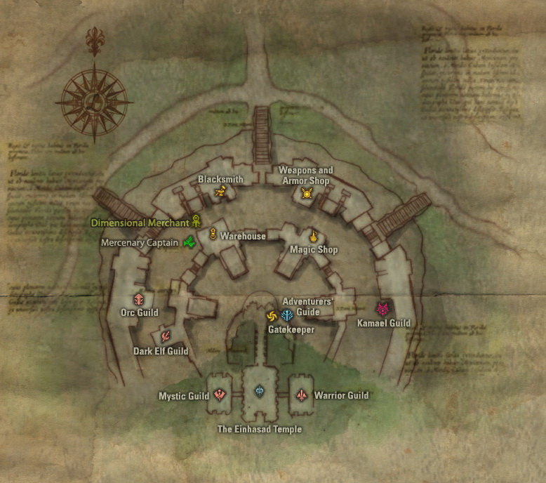 Город разделен на два уровня. На нижнем уровне находятся жилые дома, магазины и различные гильдии. На верхнем уровне находятся элитные дома, храм и холлы кланов. Элитные классы здесь не такие либеральные, как в других местах в Адене. Здесь они относятся к посторонним со всей серьезностью. Они не пускают на высший уровень всех подряд. Но у путешественника не должно возникнуть проблем.
