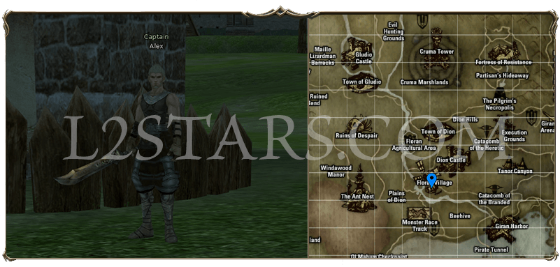 2. Телепортируемся в Town of Dion. Направляемся в Floran Village. На входе в деревню ищем Captain Alex Он вам передаст