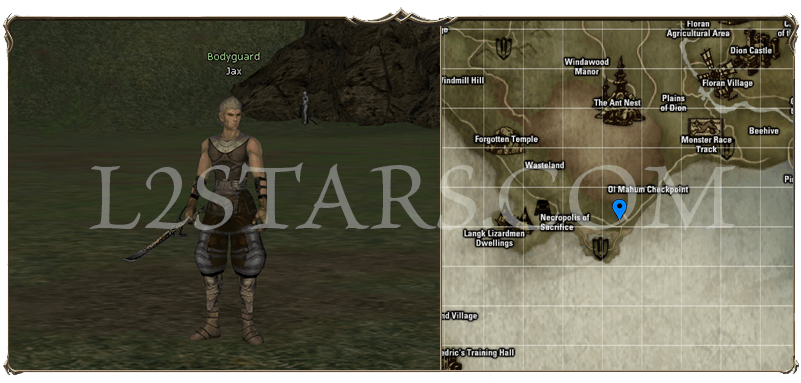 10. Телепортируемся в Gludin Village Телепортируемся в Wasteland. Ищем и разговариваем с BodyguardJax. Он вам передаст