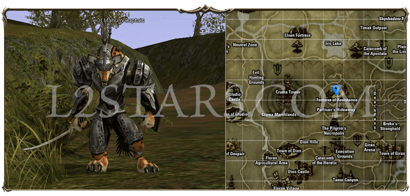 7. Телепортируемся в Giran Castle Town. Телепортируемся в Breka's Stronghold. Бежим в Gorgon Flower Garden. Охотимся на Turak Bugbear Warrior (Воин Людоедов Турак 33 ур.). Охотимся на них пока не получим Turak Bugbear Spirit Ore (Камень Людоедов Турак 33 ур.). Когда получите все необходимые предметы, возвращаемся к Terry, который находится в гильдии воинов в Town of Dion. Master Terry передаст вам