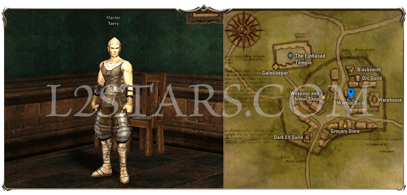 2. Телепортируйтесь в Town of Dion. Бежим в гильдию воинов и ищем Master Terry (Терри). Он передаст вам