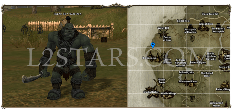 5. Телепортируемся в Gludin Village. Телепортируемся в Orc Barracks. Ищем и охотимся на Turek Orc Warlord. Пока не получим Turek Spirit Ore (Камень Орков Турек)