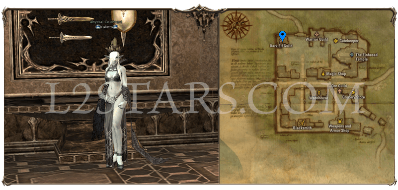 3. Телепортируемся в Gludin Village (Деревня Глудин), в гильдии темных эльфов ищем Abyssal Celebrant Kalinta.