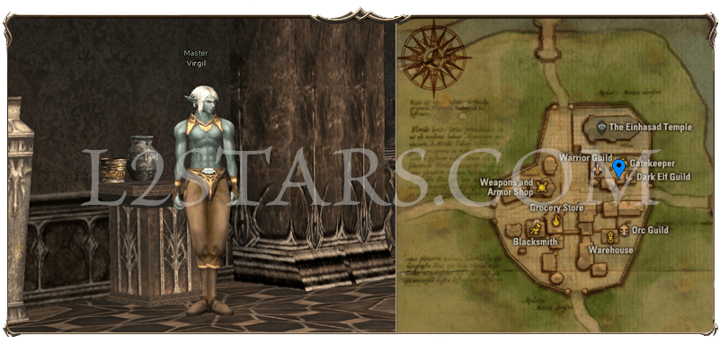 6. Возвращаемся в Town of Gludio в гильдии темных эльфов ищем Virgil. Он вам передаст