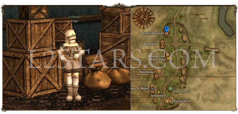 1. Квест Path of the Scavenger начинается в деревне гномов Dwarven Village. Находим коллекционера Pippi (Пепи) и берем квест, она даст письмо с рекомендацией.