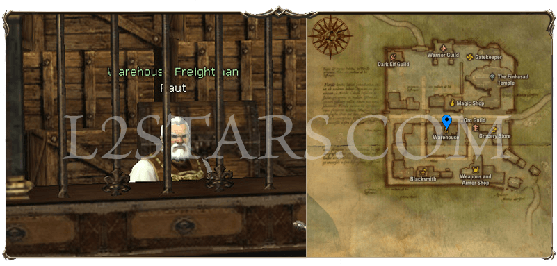 6. Телепортируемся в Gludin Village и ищем на складе Warehouse Freightman Raut.