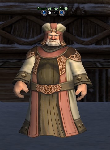 Priest of the Earth Gerald — NPC 70 уровня и обитает в локации Dwarven Village (Деревня Гномов).