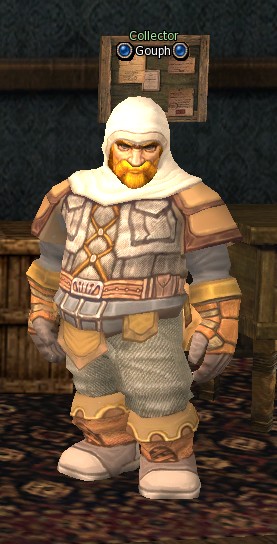 Collector Gouph (Коллекционер Гуф) — NPC 70 уровня и обитает в локации Dwarven Village (Деревня Гномов).