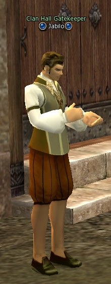Clan Hall Gatekeeper Jabilo (Привратник Холла Клана Джабило) — NPC 70 уровня и обитает в локации Town of Dion (Город Дион).