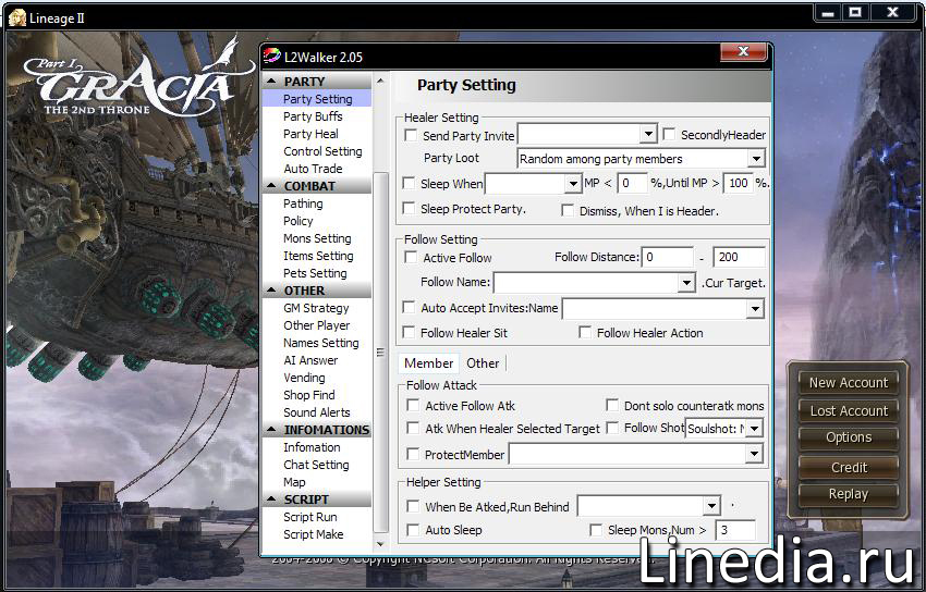 L2Walker - это программа, которая имитирует действия человека в Lineage II. Данная программа выполняет почти все действия автоматически, без вмешательства человека. L2Walker дает преимущество перед другими игроками. Автоматическая прокачка, выполнение квестов, крафт вещей и многое другое. L2Walker поддерживает свой скриптовый язык, благодаря которому можно написать любое действие боту. Бот делится на два типа: IG BOT(In Game Bot), OGG BOT(Out Game Bot). Разница между ними в том, что IG позволяет запускать бота непосредственно в игре, а OGG - наоборот, позволяет запустить бота без входа в игру. L2Walker является запрещенной программой, поэтому при использовании сего чуда есть шанс получить бан.