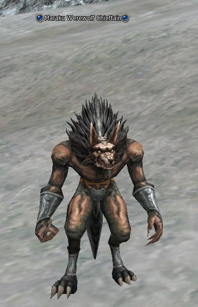 Maraku Werewolf Chieftain (Вожак Оборотней Мараку) — агрессивный монстр 14 уровня Humanoids расы. Обитает в локациях Immortal Plateau, Northern Region (Северная Часть Плато), Frozen Waterfalls (Замерзший Водопад). При убийстве моба выпадают хербы с бафами.