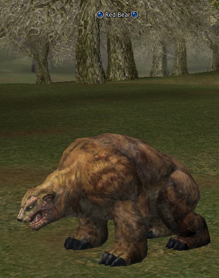 Red Bear (Рыжий Медведь) — неагрессивный монстр 14 уровня Animals расы. Обитает в локациях Ruins of Agony (Руины Страданий), Fellmere Harvesting Grounds (Охотничьи Угодья Фельмер). При убийстве моба выпадают хербы с бафами.