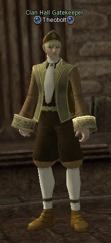Clan Hall Gatekeeper Theobolt (Привратник Холла Клана Феоболт) — NPC 70 уровня и обитает в локации Town of Giran (Город Гиран).